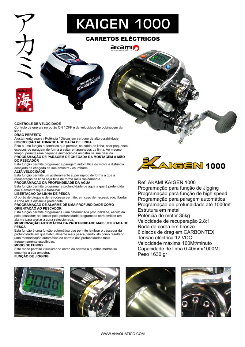 O carreto AKAMI KAIGEN 1000 é uma edição especial, produzida pela BANAX para AKAMI, os seus componentes foram reforçados em super metal fabricado na Alemanha e o seu software actualizado, de maneira a que fiquem mais resistentes as pescas mais exigentes que se fazem no oceano Atlântico. Esta série AKAMI são carretos de fabrico especial que se diferenciam dos carretos stand BANAX.